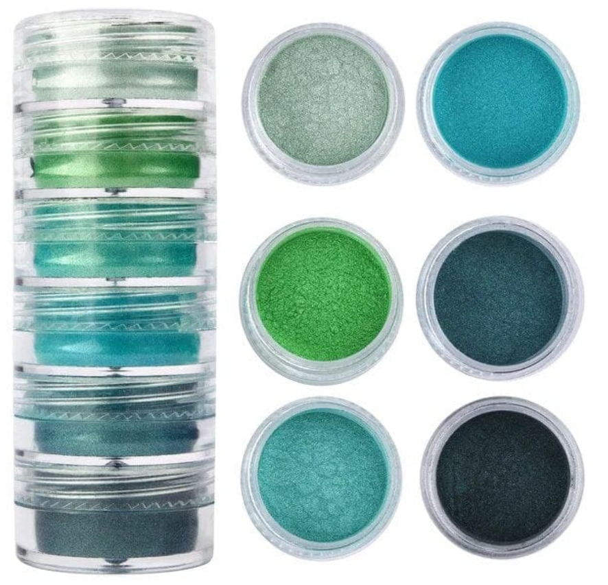 “6 Shade Pearl Mica Powder (A)” refers to a specific set of pearlescent pigments, often sold as a convenient 1-container product with 6 different colors or a multi-compartment pack for resin art, jewelry making, soaps, cosmetics, and DIY crafts, providing a beautiful shimmer for various artistic projects, with “(A)” likely denoting the specific color palette or variant. These powders create depth and lustre, mixing into mediums or brushed on, and are known for their quality and versatility in adding metallic or iridescent effects.